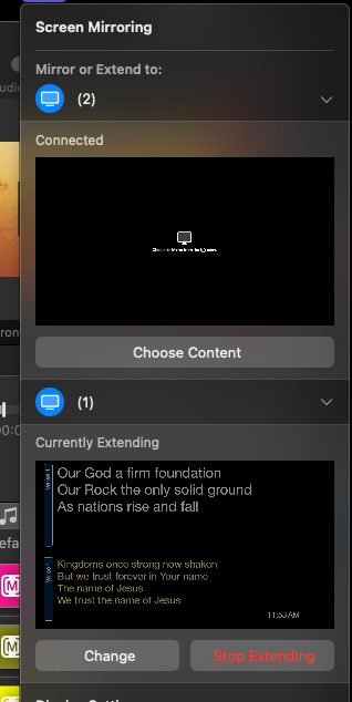 Further, sometimes ProPresenter forgets which display is which. If the screens are still not showing anything after updating the screen mirroring, or if they are showing the wrong output, you’ll want to go into ProPresenter’s own screen configuration.